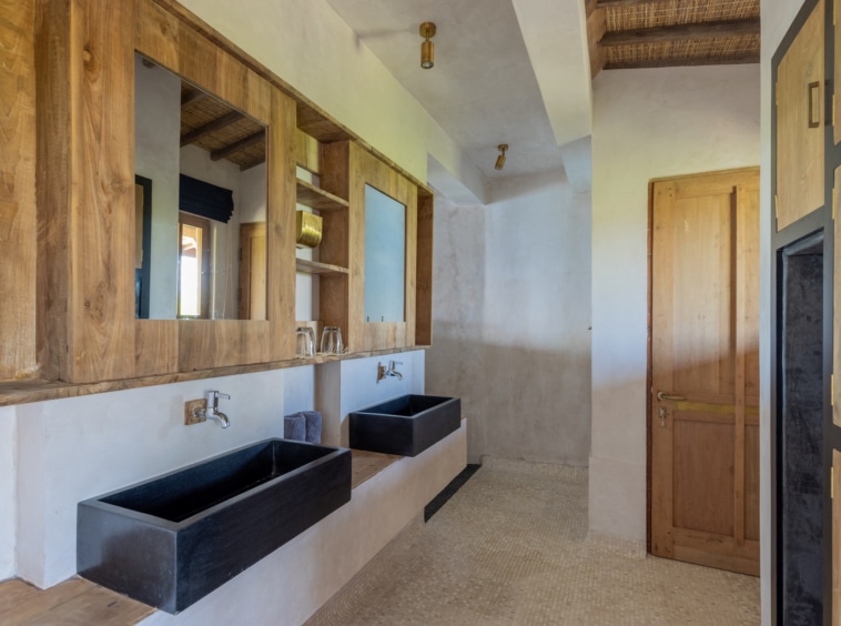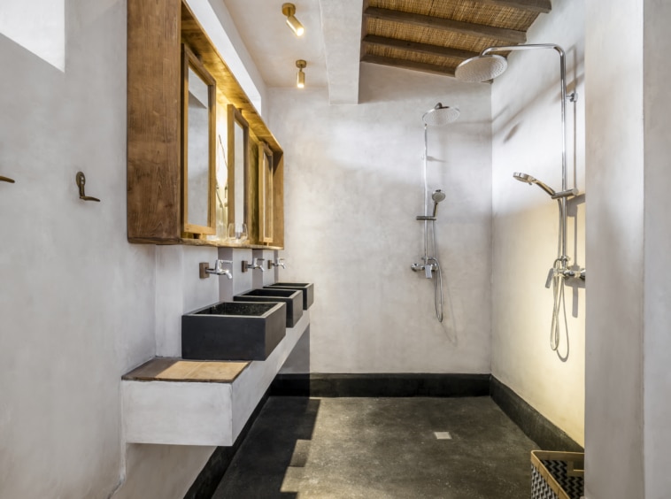 All 5 bedrooms have en-suite bathrooms in modern design, a/c, wardrobes, reading areas inside as well as a little private lounge terrace/balcony outside of the room. Large sliding glass doors enable a breathtaking view on the garden, pool and ocean when you wake up. The perfect space to sleep, relax and have some privacy.