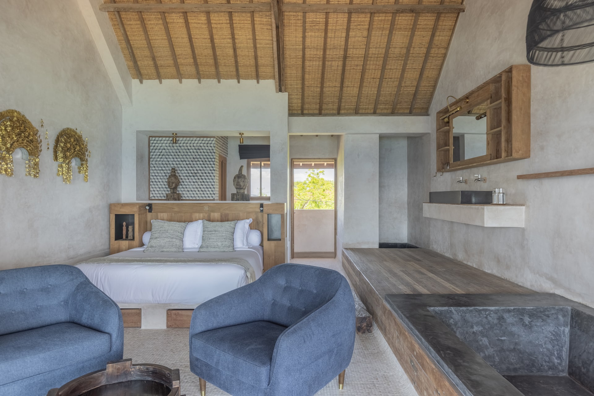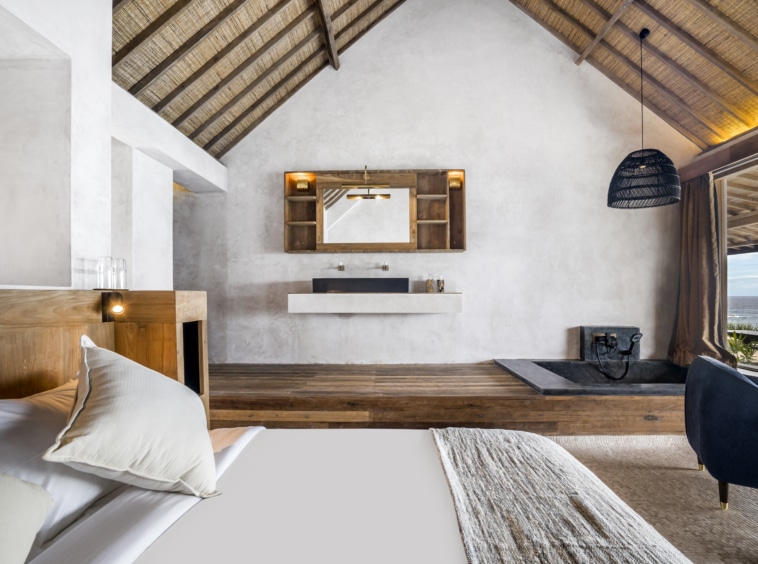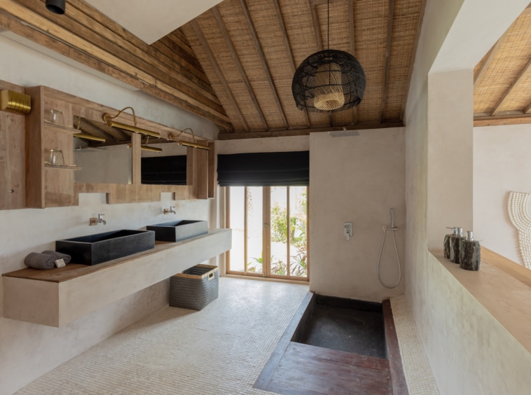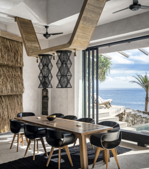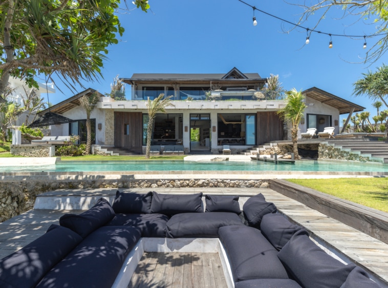 The outdoor area hosts the magnificent pool with a beach area to relax, enjoy the Bali sun and incredible ocean view in the private pool or on the sun chairs. The garden offers plenty of chill out areas like the beautiful lounge area on the cliff, overlooking the ocean and offering the perfect spot for sunset. An outdoor pétanque field gives you the opportunity to play this popular french game with your friends and family or you can just relax and enjoy the view.